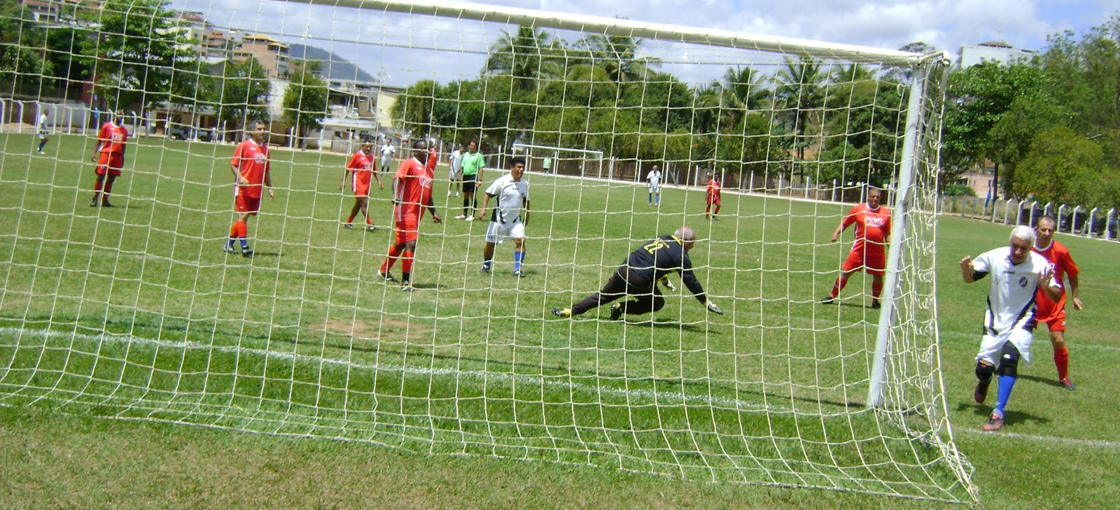 Devido ao forte calor, o 1º tempo foi muito candenciado com ambas as equipes tocando a bola em passes curtíssimos. Houve um certo domínio da equipe de São João até os 20 minutos( na foto abaixo, Jairo Biro-Biro poderia ter aberto o placar, mas perdeu ). Dos 25 em diante, os cinquentões equilibraram a partida e a 1ª etapa terminou em 0x0.