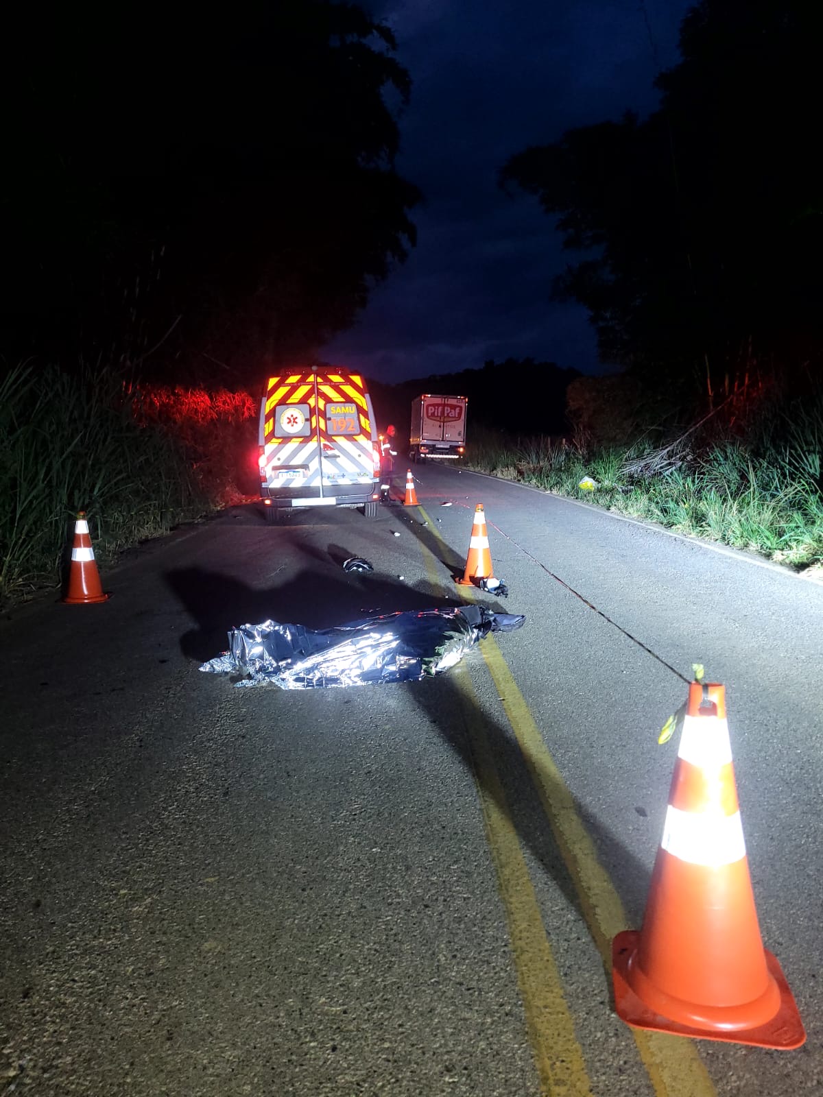 A equipe do Serviço de Atendimento Móvel de Urgência esteve no local, onde a socorrista e técnica de enfermagem Kátia Cilene da Silva constatou que o condutor da motocicleta, identificado como Izaias Riguini Silva, de 45 anos, já apresentava sinais incompatíveis com a vida, com grave trauma craniano.