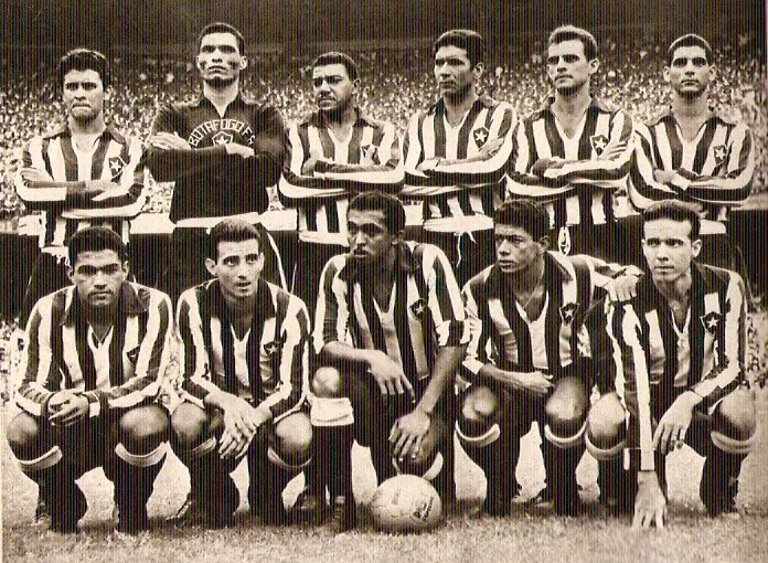 Continuando a série de postagens de títulos conquistados pelo Glorioso Botafogo (publicamos 48 e 57) agora é a vez do bi em 1962. Timaço que ilustra o Blog de hoje: Paulistinha, Manga, Jadir, Nílton Santos, Aírton e Rildo. Agachados: Garrincha, Edson, Quarentinha, Amarildo e Zagalo. Aliás, Nílton Santos, Garrincha, Amarildo e Zagallo foram titulares da Seleção Brasileira Bi campeã no Chile 1962. Ou seja, bi do Rio de Janeiro e do Mundo.