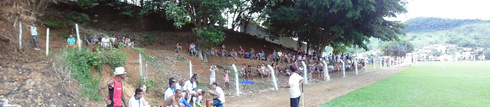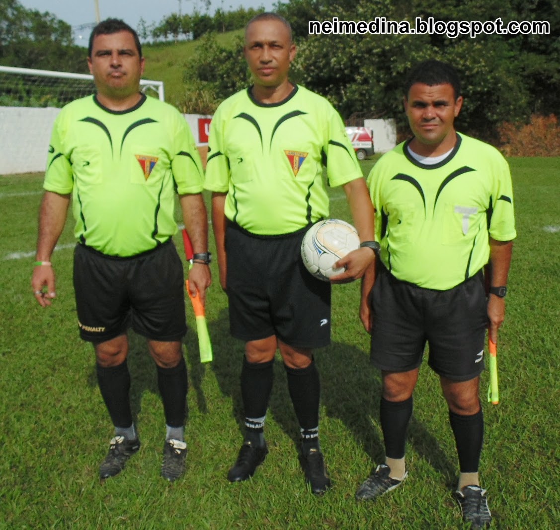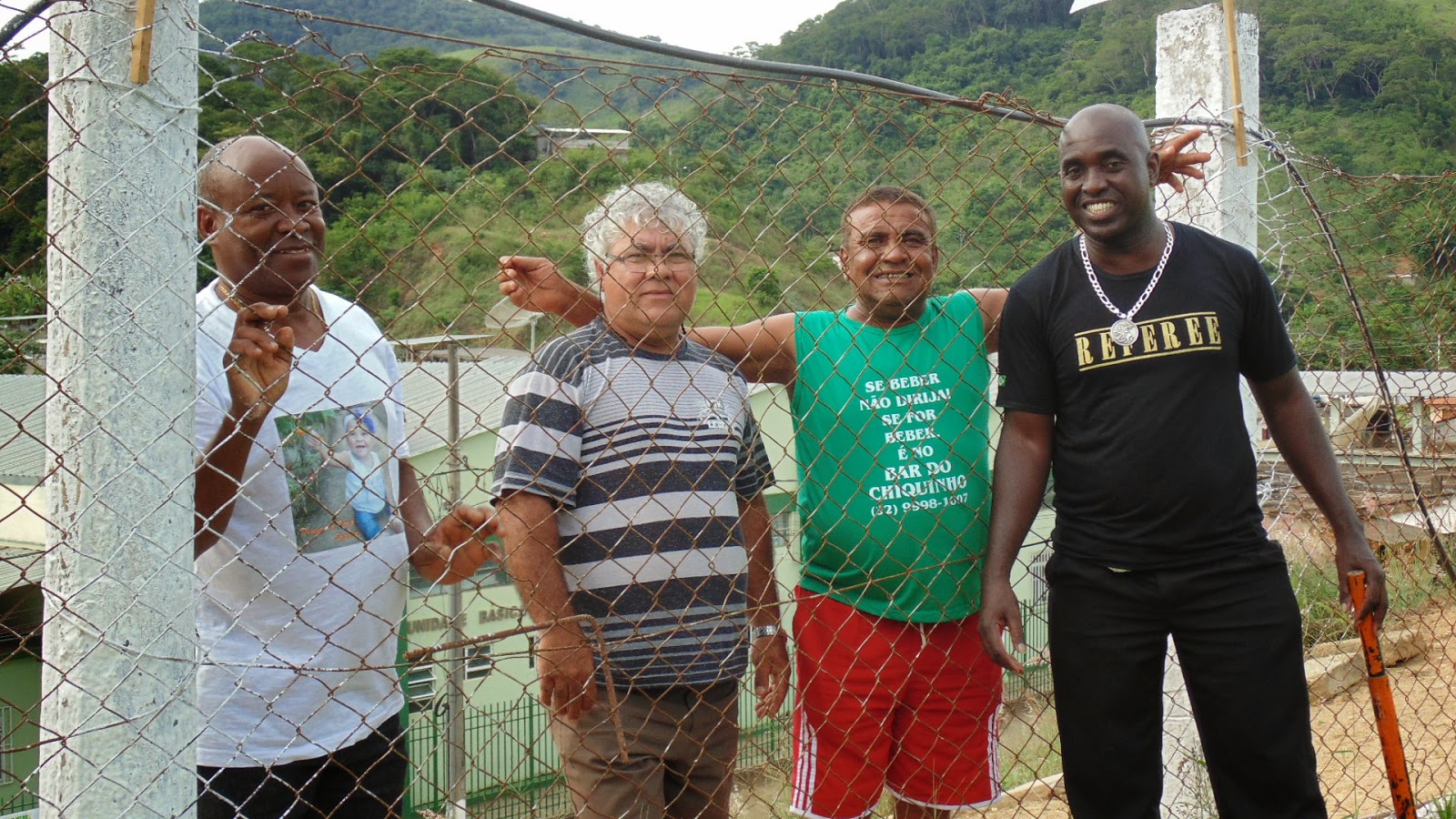 Freitas(camisa verde) junto com o torcedor de Itamarati. O árbitro e segurança nas horas vagas, sorri.