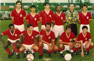 Campeão Municipal 1995, em pé: Dário, Edinho, Geraldinho, Fernando, Juarez e Kilin. Agachados: Garça, Candinho, Zé Luiz, Adil e Rossi.