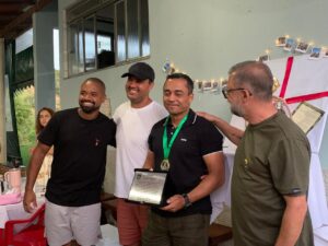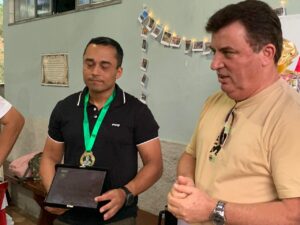 Um dos momentos mais especiais foi a entrega das homenagens: o Sargento Aquino e sua esposa receberam um quadro com a imagem da família — ele, a esposa e a filha — gesto simbólico, representando os laços afetivos, sociais e comunitários construídos com São João Nepomuceno. Também recebeu uma placa de agradecimento, ressaltando sua competência profissional e, acima de tudo, a amizade sólida que edificou.